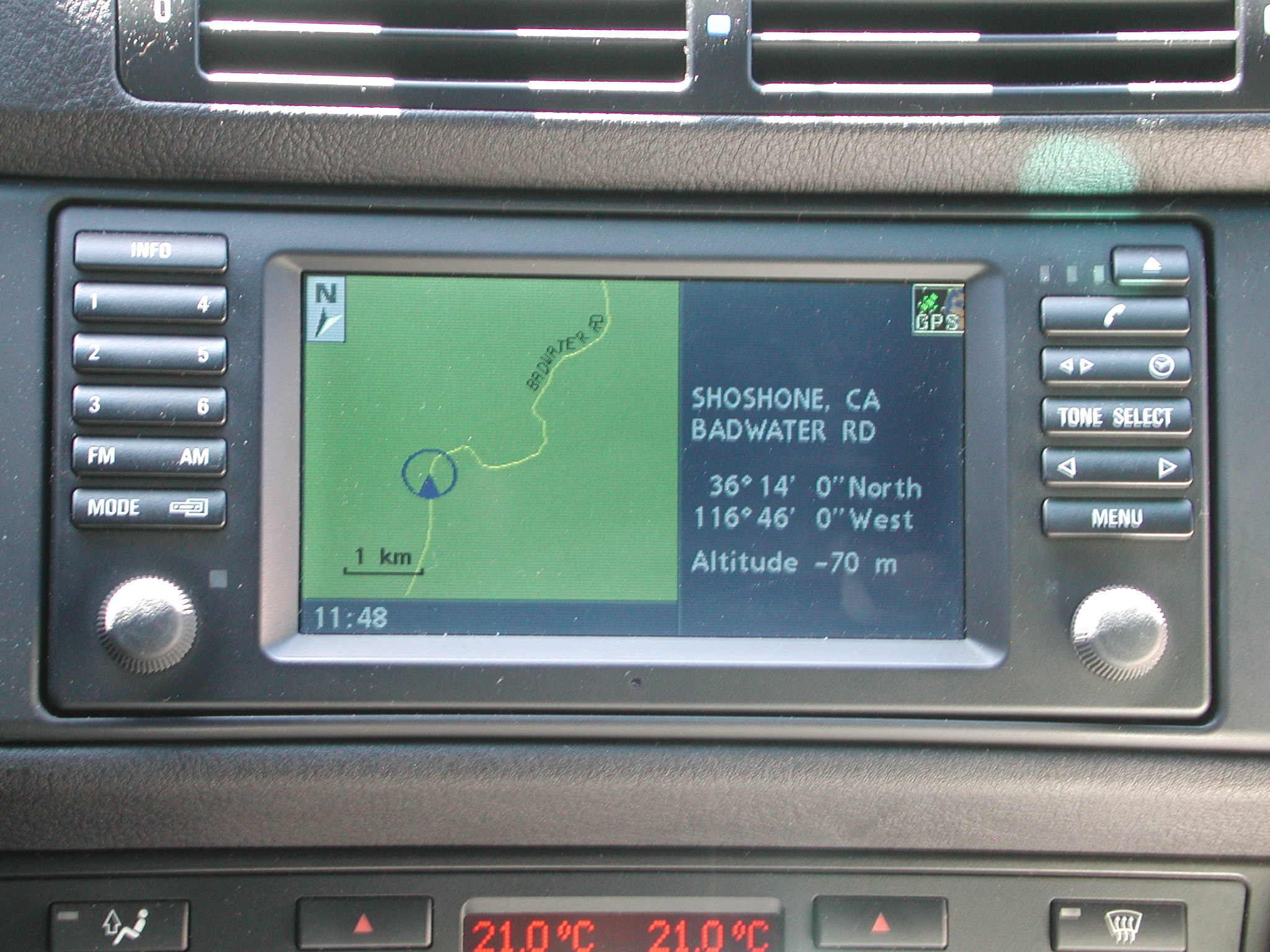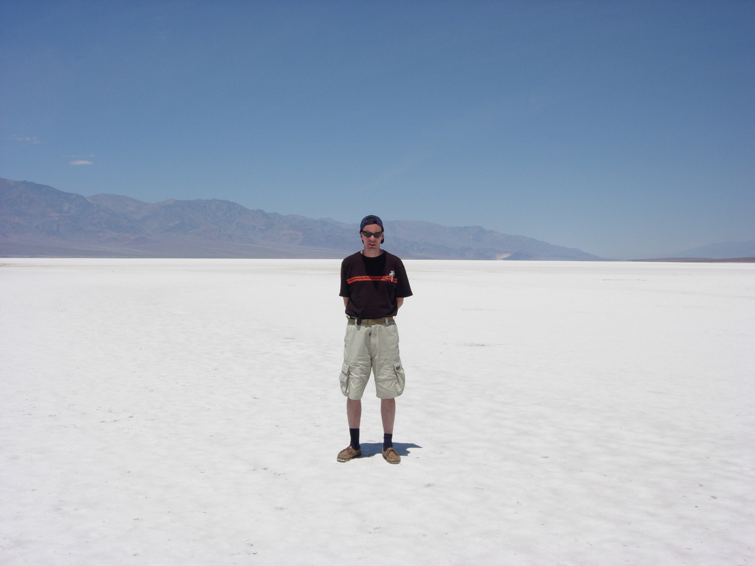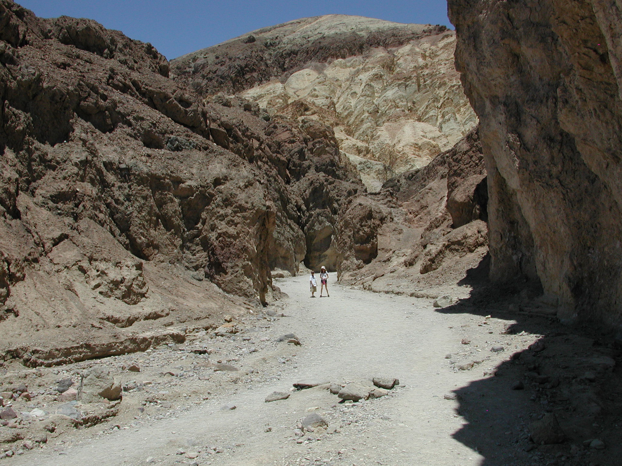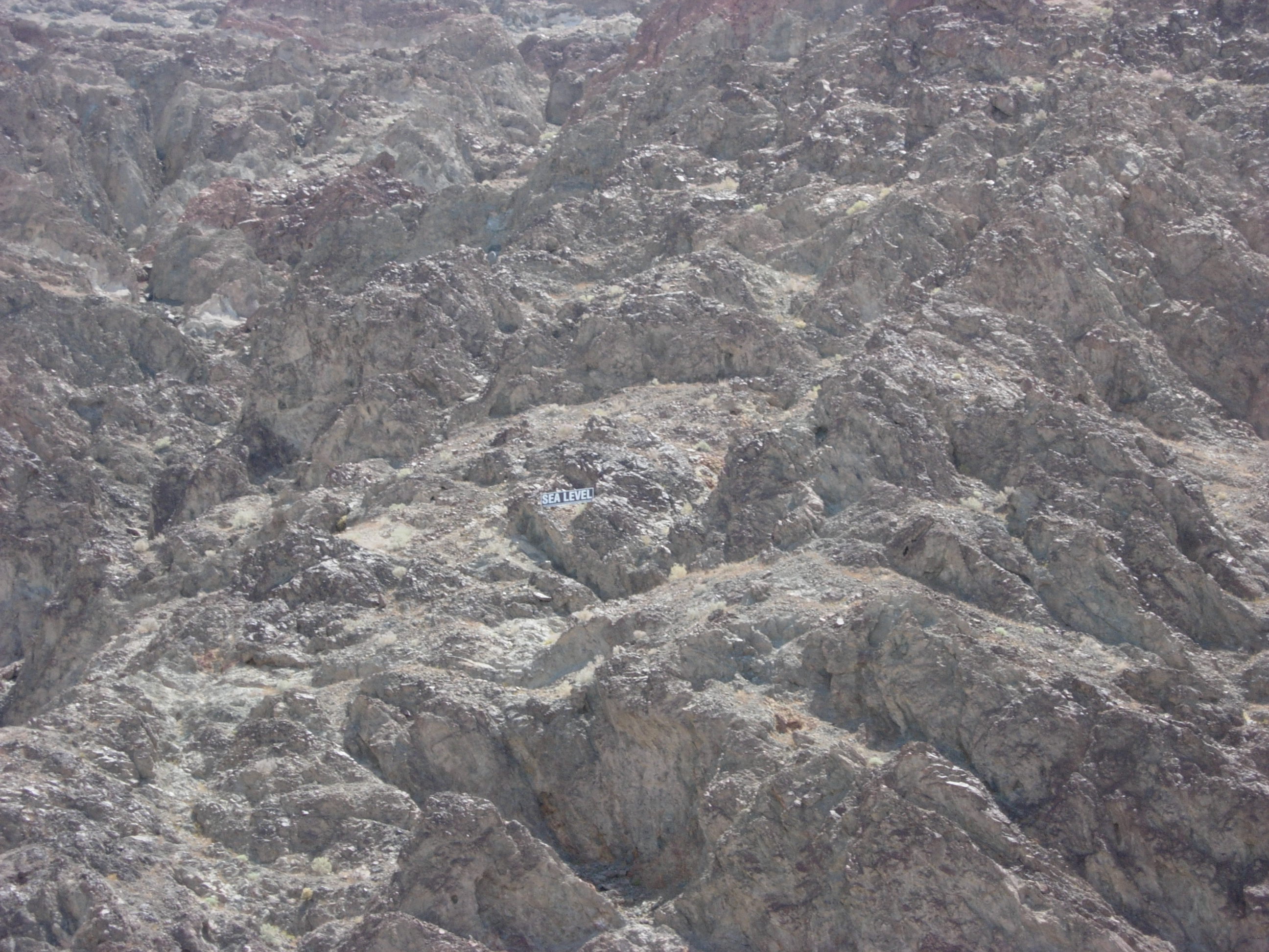This day was set aside for roaming the valley, so we got in the car and drove over to Furnace Creek visitor center and looked around for a bit before continuing on to Badwater. My old Nikon Coolpix 990, or perhaps just the batteries, was not too happy with the heat though. Outside temperature approached 45C and even though the air conditioner worked flawlessly, the sheer radiation of the sun heated everything it touched to boiling and my camera refused to cooperate as we got down to Badwater. My wife had hers though so we got out on the salt to snap a few pictures. The kids forgot their sun-glasses and walking on the white salt in the intense sunlight just wasn’t possible so they turned back to the shade of the shelter by the parking. After spending a night and half a day down in the valley you come to realize that one of hottest places on earth means the heat is just merciless. No escape anywhere, the sun is more or less straight up and even at night the temperature is around 40C. And there were Shoshone Indians living down here before America was invaded – that is just amazing.