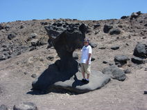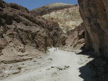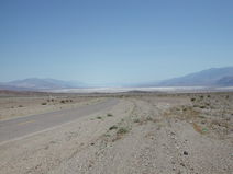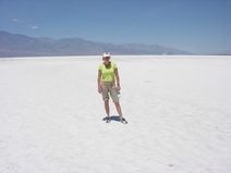 At about 7pm we set out with a few liters of water to conquer the desert. The sun was setting but temperature was still well over 40C. After getting past the band of nasty spiny weed that grew on the side of the road we took our shoes off. The day before we learned in an unpleasant way that tens of thorns easily penetrated the soles of our feet - and our hands when attempting to remove them. The further out we got, the more sand we had around us and it truly looked like we were in the middle of Sahara. Once we got close to the highest dune we were amazed by its immensity and the several hundred meters wide “bowl” at its base. Unfortunately we hadn’t brought our cameras to perpetuate the awesome scenery as we were concerned about not getting sand in them. My son and I set out to reach the top along the left ridge while my wife and daughter took to the right. Going uphill on a surprisingly sharp ridge in loose sand in 42-43C heat is very exhausting and as we reached the next highest peak we were out of water and my ten-year old was very red-faced. Remembering the horror-stories about the treacherous risks of dehydration in Death Valley, I decided to cut it short and not walk the last maybe 100 meters or so to my son’s huge disappointment. My wife and daughter, who had stopped at the base of right ridge, looked ant-sized from where we stood. Even if I would have made it with no problem, he may not have, and I surely didn’t want to end up carrying him the two miles back to the car, and besides, it started to darken a bit.