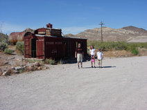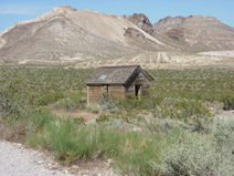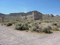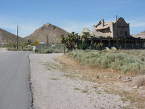 After meat-loaf and a variety of other treats from the buffet, we decided to take a drive up to see the ghost-town of Rhyolite. It was amazing to drive up the deserted, in every meaning of the word, road towards Nevada and Beatty so we stopped and snapped a few pictures. It was hot and deafening quiet except for the occasional whisper of the hot breeze in the sparse vegetation and everything around was nothing but barren dry rock and gravel and a few spiny weeds defying the elements.
